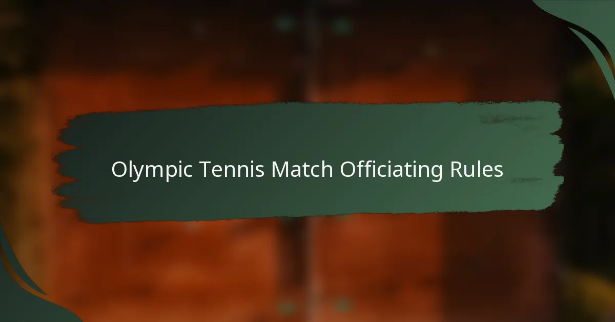 The officiating rules for Olympic tennis matches ensure fair play and adherence to the sport’s regulations. These rules outline the roles of officials, key match protocols, and procedures for resolving disputes, all of which significantly impact match outcomes.